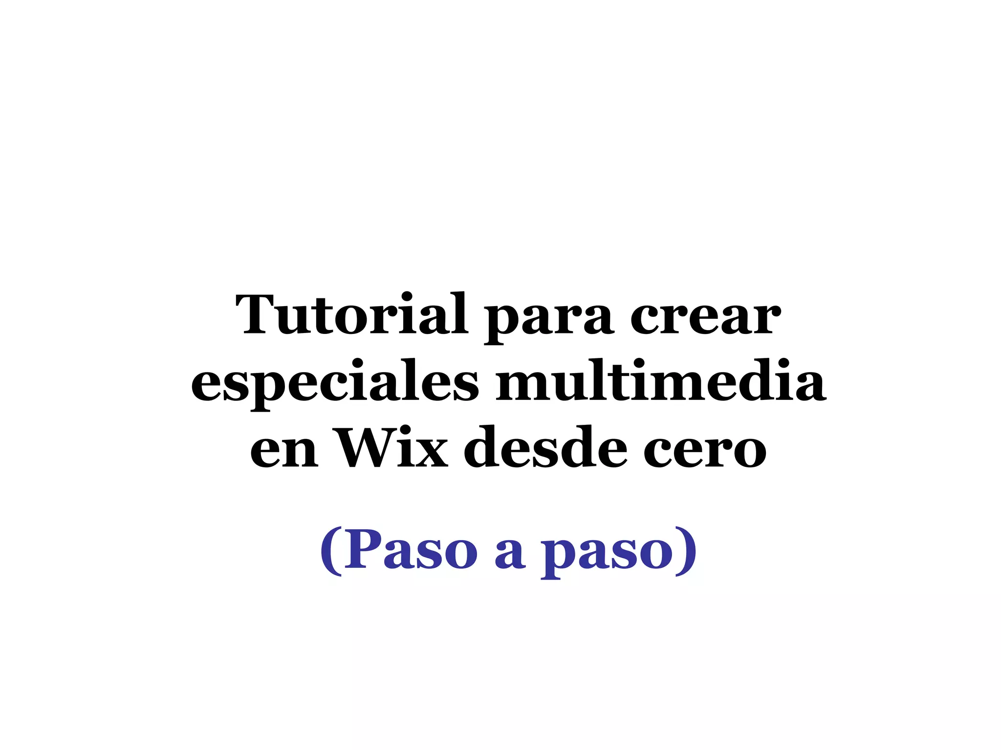 Este documento proporciona un tutorial paso a paso para crear especiales multimedia en Wix desde cero. Explica cómo registrarse en Wix, crear una plantilla en blanco, agregar páginas, menús de navegación, contenido multimedia como texto, videos, audios y galerías de fotos, y publicar el especial multimedia completo.