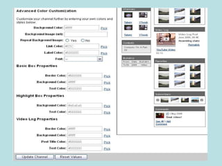 YouTube es un sitio web que permite a los usuarios subir, ver y compartir videos. Los usuarios pueden crear un canal en YouTube para subir sus propios videos, ver videos subidos por otros, agregar videos a sus listas de favoritos, y suscribirse a los canales de otros usuarios. YouTube usa Adobe Flash para transmitir videos y aloja una amplia variedad de contenido creado por usuarios y material con derechos de autor.