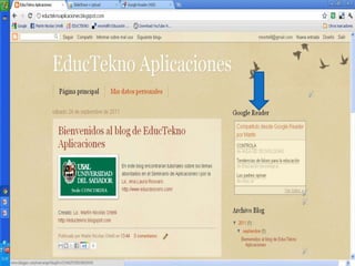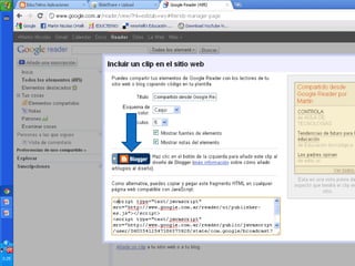 Este documento proporciona instrucciones en 3 pasos para agregar un enlace a un blog desde Delicious y Google Reader. Primero, se copia el código de enlace desde Delicious o Google Reader. Luego, se pega el código en el blog a través del menú contextual. Finalmente, se guardan los cambios para publicar el enlace en el blog.