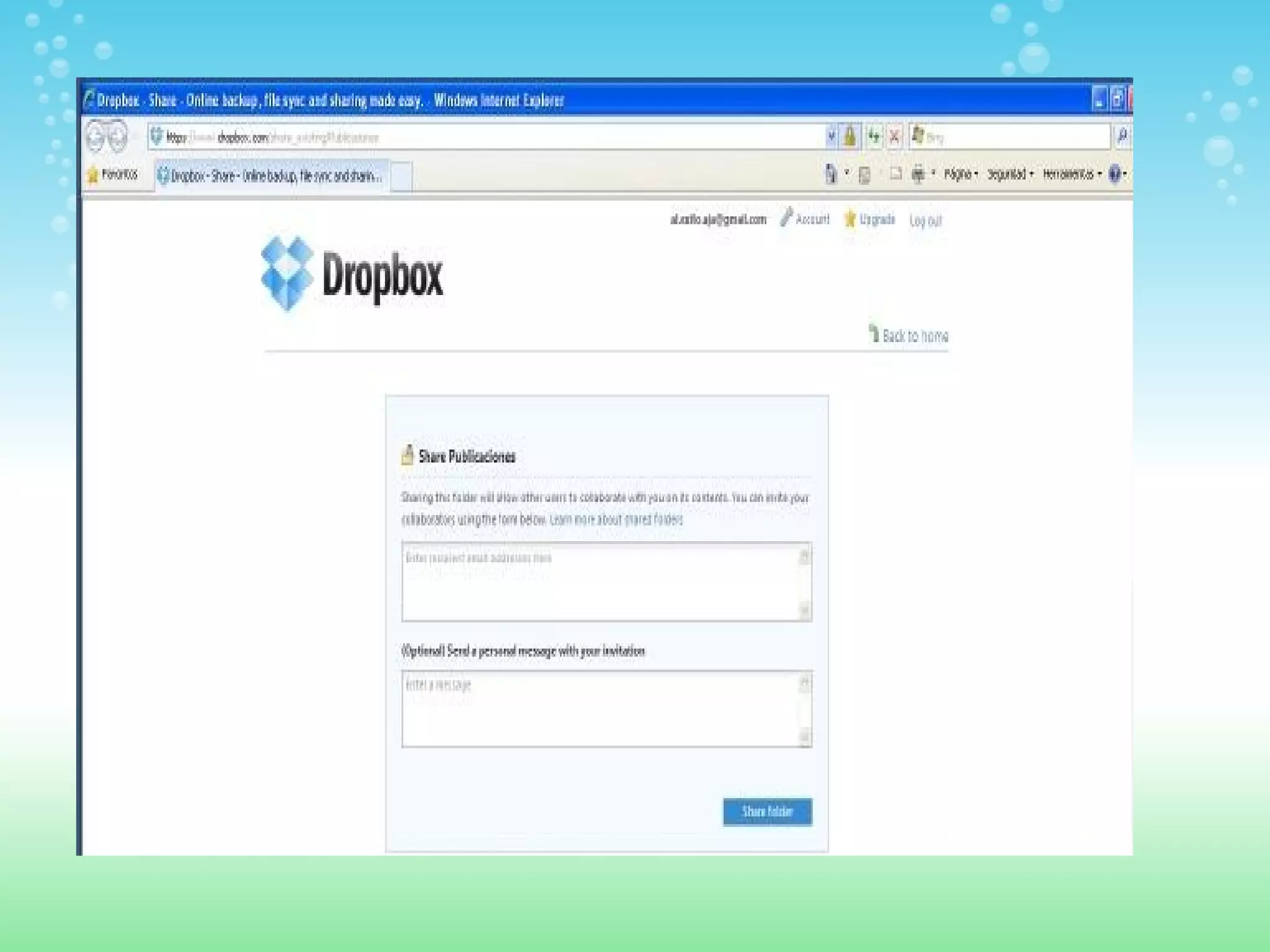 Dropbox permite a los usuarios almacenar y sincronizar archivos en la nube para acceder a ellos desde cualquier dispositivo. Los usuarios pueden compartir archivos y carpetas con otros a través de Dropbox. Al instalar el programa, los usuarios obtienen una carpeta en su computadora que se sincroniza automáticamente con la nube, permitiendo almacenar, editar y compartir archivos de forma sencilla desde cualquier lugar.