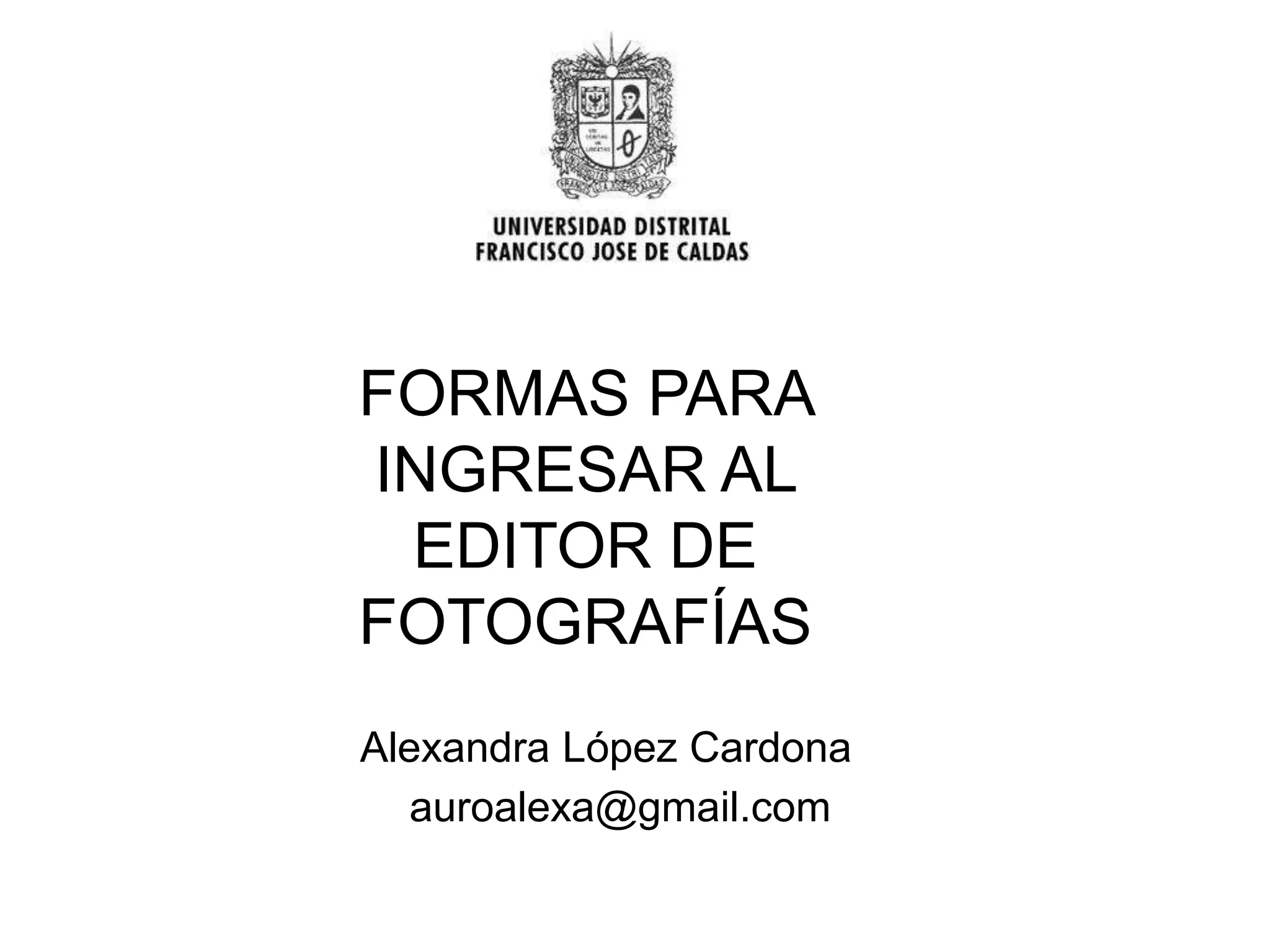 El documento describe dos formas de ingresar al editor de fotografías Microsoft Office Picture Manager: 1) Buscar el programa en el menú de inicio y seleccionarlo, o 2) Hacer click derecho en una fotografía y abrirla con Microsoft Office Picture Manager.