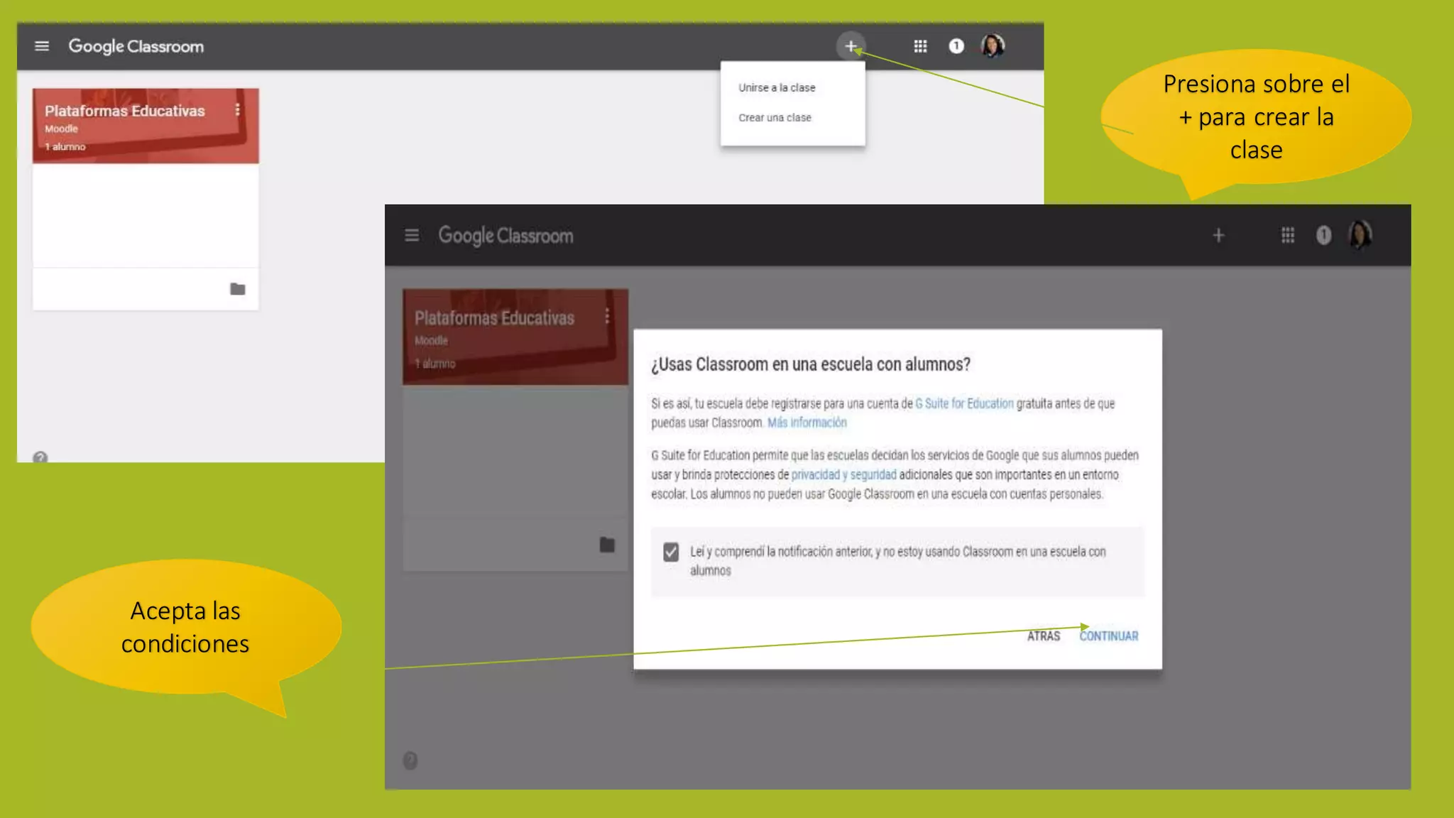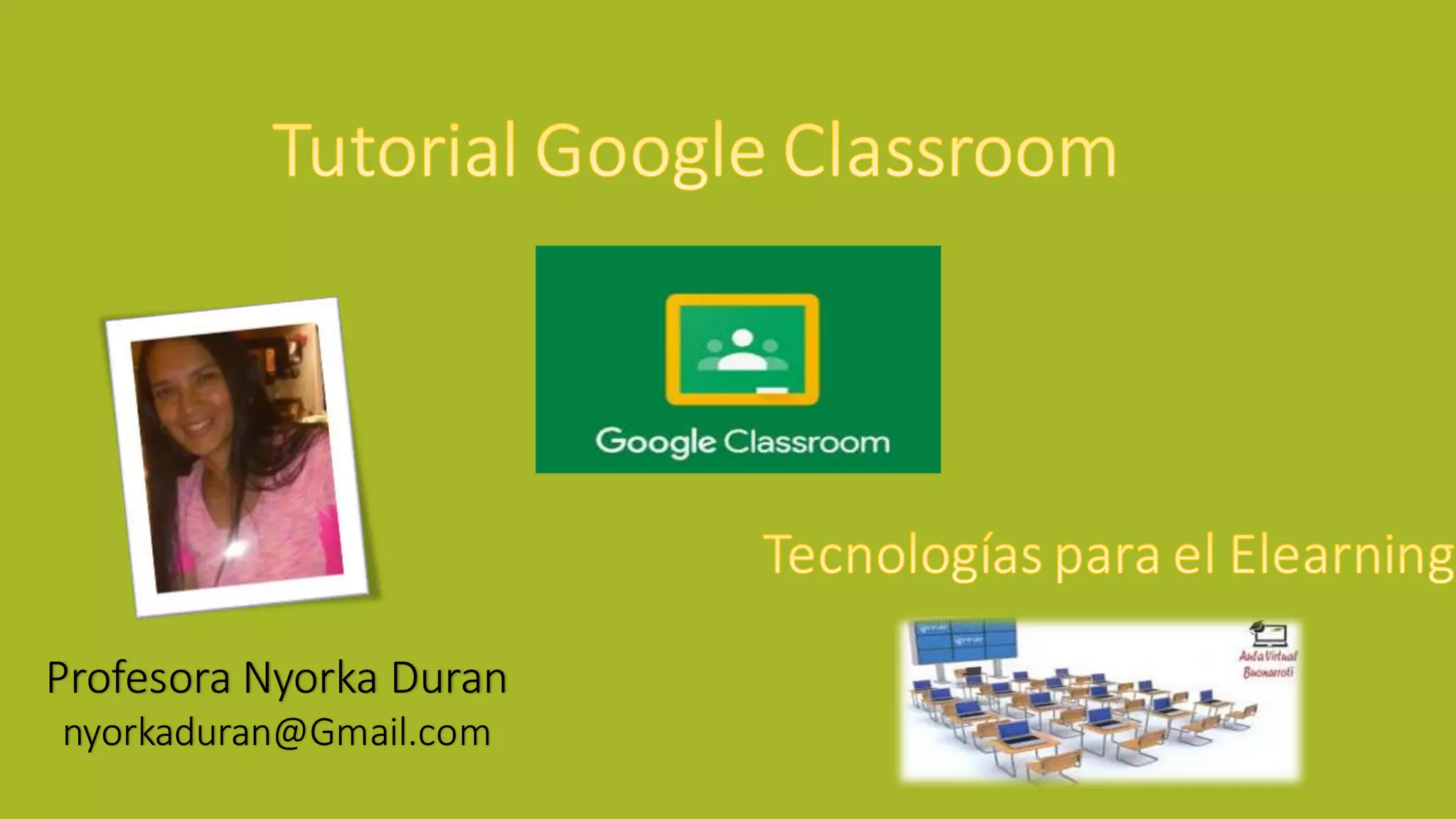 El documento proporciona instrucciones detalladas sobre cómo configurar y utilizar una clase en Google Classroom. Explica cómo crear una clase, agregar un tema y foto, organizar el trabajo de clase en módulos y tareas, compartir documentos de Google Drive con la clase, y agregar estudiantes y profesores.
