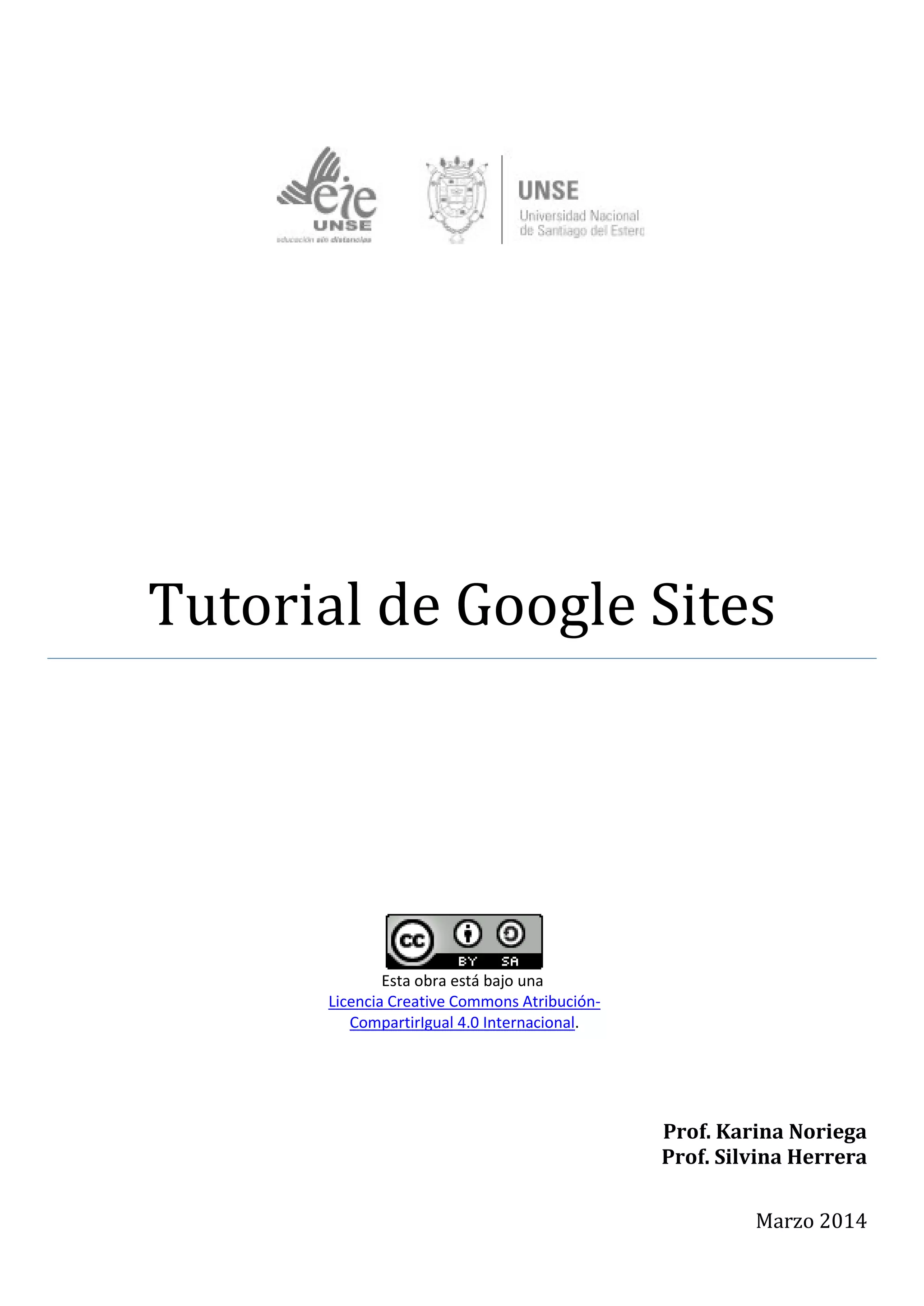El documento proporciona instrucciones sobre cómo crear y administrar sitios web utilizando Google Sites. Explica los pasos para crear un nuevo sitio, agregar páginas e insertar diferentes objetos como imágenes, videos y presentaciones. También describe cómo editar páginas existentes y configurar opciones como el diseño, permisos y almacenamiento del sitio a través de la administración del mismo.