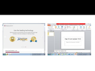Este documento proporciona instrucciones para convertir una presentación de PowerPoint en formato Flash de dos maneras: 1) Usando la opción "Quick Publish" de forma predeterminada o 2) Personalizando las opciones de conversión a través de la opción "Publish". También explica cómo insertar videos en formato Flash o de YouTube en las diapositivas antes de la publicación final de la presentación en formato Flash.