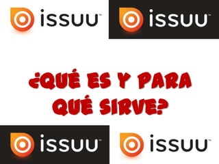 ISSUU es un servicio en línea que permite la visualización y distribución de contenido digitalizado de forma interactiva y personalizable, como revistas. Genera código HTML para insertar este contenido en sitios web o blogs. Funciona de forma similar a leer una revista impresa pero de manera dinámica usando Flash. Ha sido seleccionado como uno de los mejores 50 sitios web en 2009 y tiene clientes como Routledge, El Banco Mundial y Cambridge University Press.