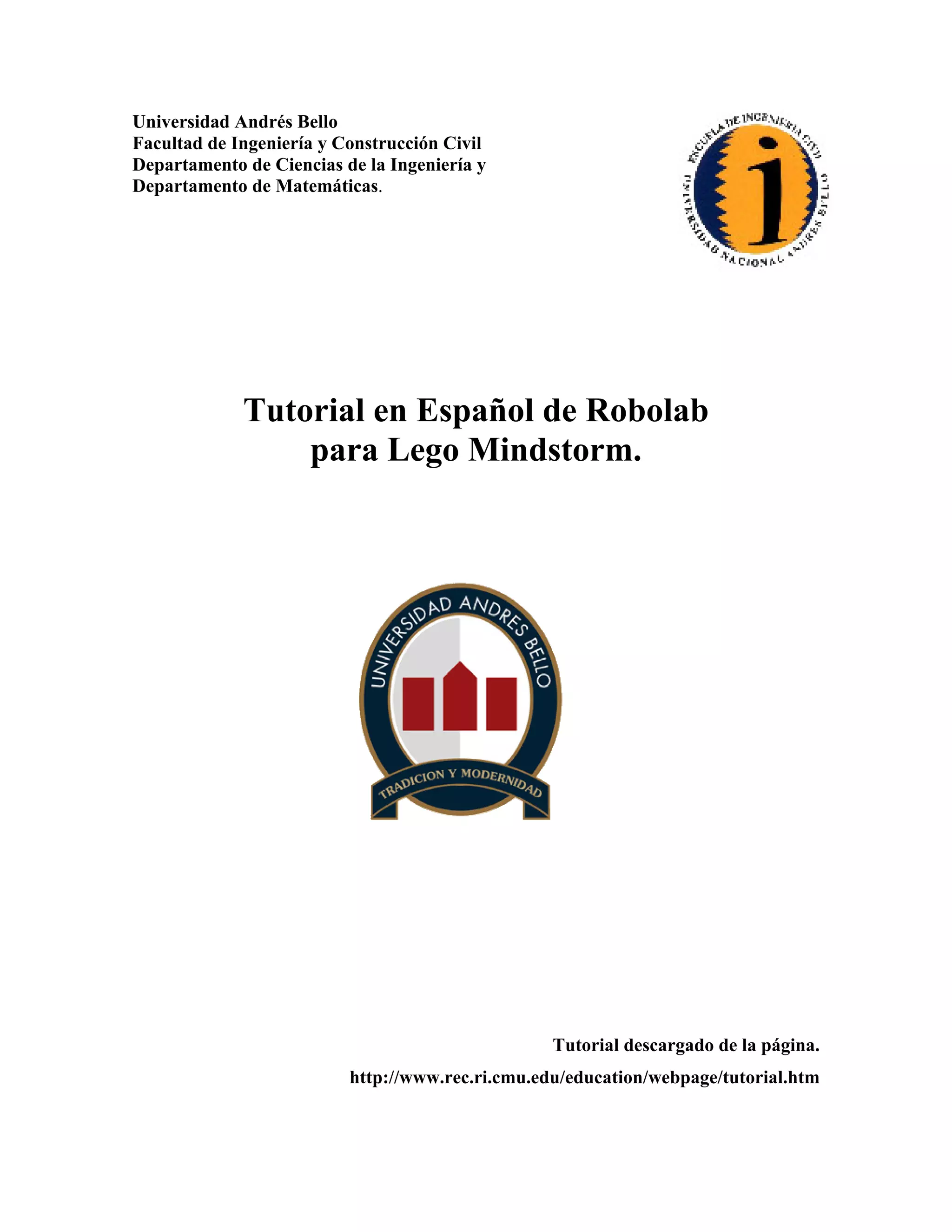 Este documento presenta un tutorial en español sobre el uso de Lego Mindstorms y el software Robolab. Contiene 6 lecciones que cubren la introducción a los componentes de Lego Mindstorms, la programación básica en Robolab, y el uso de engranajes, sensores y programación condicional. Cada lección incluye objetivos, explicaciones del contenido, y actividades prácticas de diseño para que los estudiantes apliquen los conceptos.