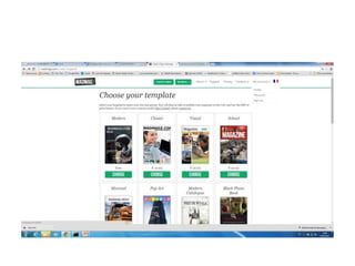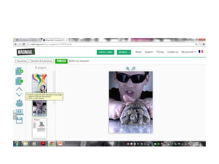 Este documento proporciona instrucciones para crear revistas digitales en la plataforma Madmagz. Explica cómo registrarse, seleccionar una plantilla gratuita, modificar el texto y las imágenes de las páginas, agregar y eliminar páginas, invitar colaboradores, previsualizar, generar un PDF, publicar la revista y acceder a las revistas creadas y publicadas.