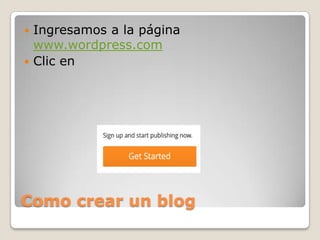 Este documento proporciona instrucciones para crear un blog, cuenta en Slideshare y Scribd, y agregar videos, documentos de Word, presentaciones de PowerPoint y widgets a un blog. Explica cómo ingresar a los sitios web correspondientes, completar los formularios de registro, copiar enlaces y pegarlos en la página de entrada de WordPress.