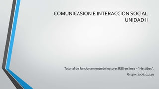 Netvibes es un servicio web que actúa como escritorio virtual personalizado para organizar y leer noticias y otra información de diferentes fuentes como blogs, periódicos y canales de YouTube en un solo lugar. Los usuarios pueden crear una cuenta gratis en Netvibes, agregar feeds de sitios web haciendo clic en "agregar contenido" y luego "agregar feed", e ingresar la URL de la fuente. Esto añadirá automáticamente los artículos del feed al escritorio virtual para que el usuario pueda leerlos y organizar los