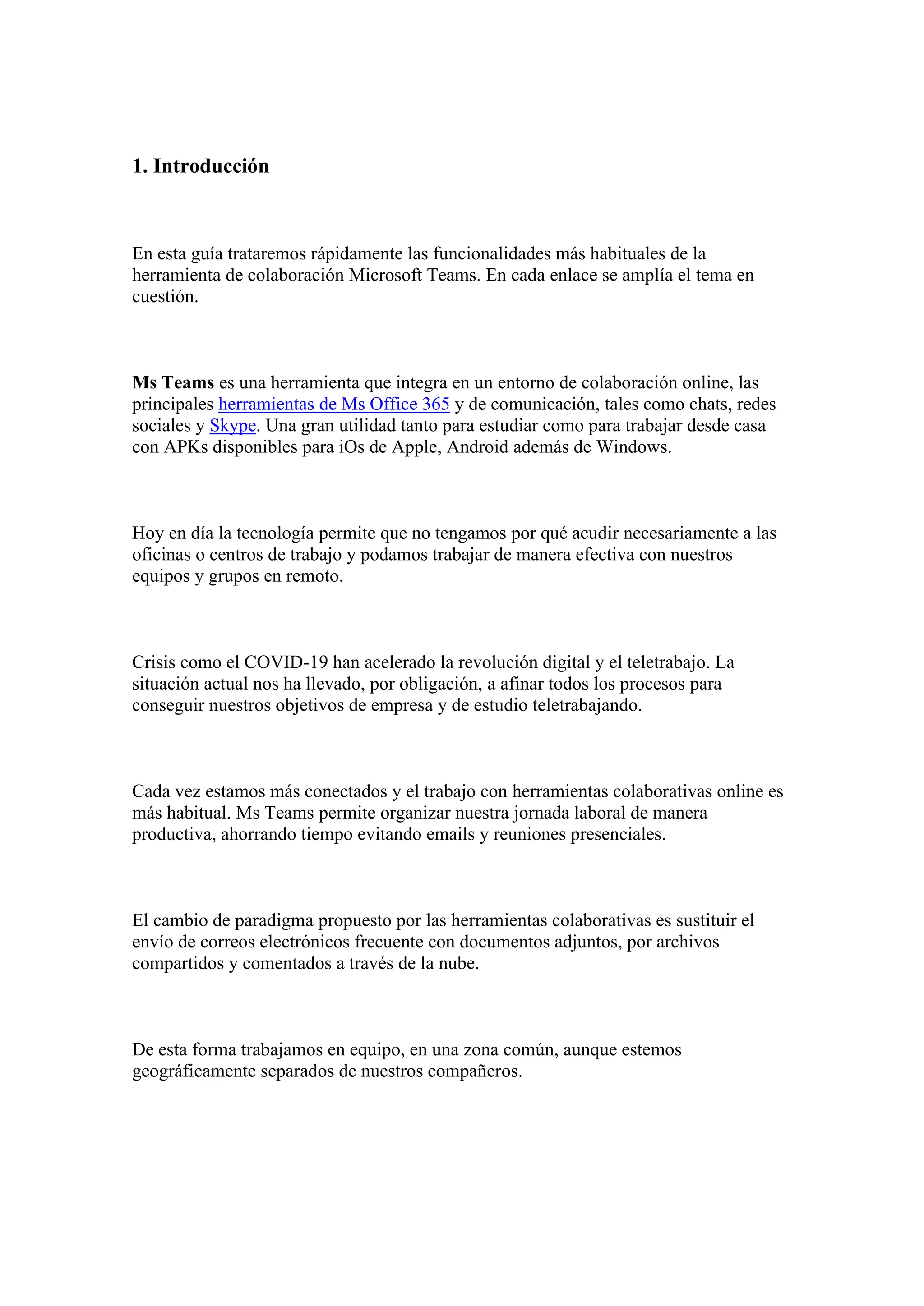 herramienta de colaboración Microsoft Teams. En cada enlace se amplía el tema en