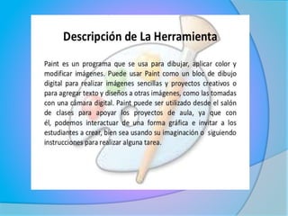 Este tutorial presenta la herramienta Paint, destacando sus beneficios y simplicidad al ser parte de la paquetería de Microsoft. Se describe cómo acceder a ella y sus múltiples usos, desde crear dibujos sencillos hasta modificar imágenes. Se sugiere su implementación en aulas de preescolar para fomentar la creatividad y curiosidad de los niños.
