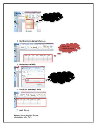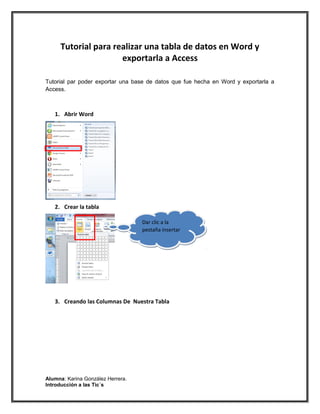 Este tutorial explica cómo crear una tabla de datos en Microsoft Word, guardarla en formato HTML y luego exportarla a Microsoft Access para crear una base de datos. El proceso implica crear la tabla en Word, guardarla como página web, abrir Access, importar el archivo HTML y seleccionar las columnas para crear la tabla de base de datos.