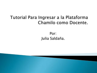El documento proporciona instrucciones en 20 pasos para crear un curso en la plataforma Chamilo. Estos pasos incluyen registrarse en Chamilo, completar los campos obligatorios, crear un curso con un nombre significativo, editar la portada del curso, cargar archivos y crear herramientas de interacción como tareas, foros y wikis para generar contenido. El autor invita a los lectores a explorar Chamilo como docentes para crear sus propios cursos y materiales.