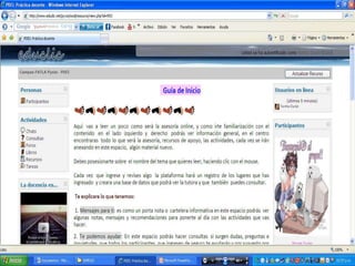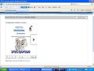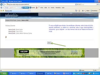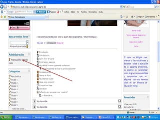 Este documento proporciona instrucciones para ingresar y navegar en un aula virtual. Explica cómo llenar los datos de ingreso, leer las notas del curso, interactuar en los foros sociales, de ayuda y para compartir recursos, descargar archivos, participar en el chat, ver las actividades programadas y actualizar el perfil personal. Finalmente, anima a los estudiantes a conectarse si necesitan ayuda, ya que todos están aprendiendo.