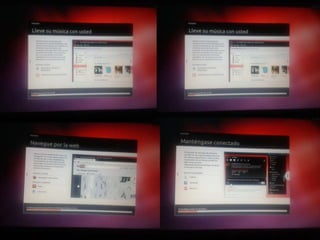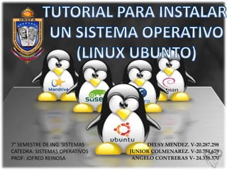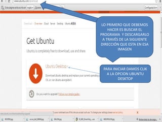Este documento proporciona instrucciones paso a paso para descargar e instalar el sistema operativo Ubuntu en una computadora. Explica cómo encontrar y descargar el programa Ubuntu, crear un disco de arranque USB e instalar el sistema operativo, reemplazando el sistema operativo existente. También cubre la configuración del usuario y la interfaz una vez completada la instalación.