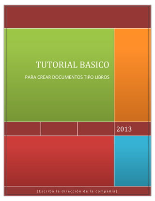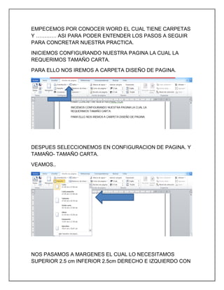 Este documento proporciona instrucciones paso a paso para crear un libro en Microsoft Word. Explica cómo configurar los márgenes y tamaño de página, insertar una portada, encabezados, pies de página, capítulos, bibliografía y una tabla de contenidos. El objetivo es enseñar los conceptos y herramientas básicas en Word para producir un documento del tipo libro de manera ordenada y profesional.
