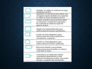 Este documento presenta información sobre tipos de datos, variables, constantes y operadores en pseudocódigo. Explica que una variable representa un valor de datos y que las constantes definen valores que no cambian. También describe tipos de datos como enteros, reales y caracteres, y estructuras como enumerados. Finalmente, proporciona ejemplos de pseudocódigo y diagramas de flujo.