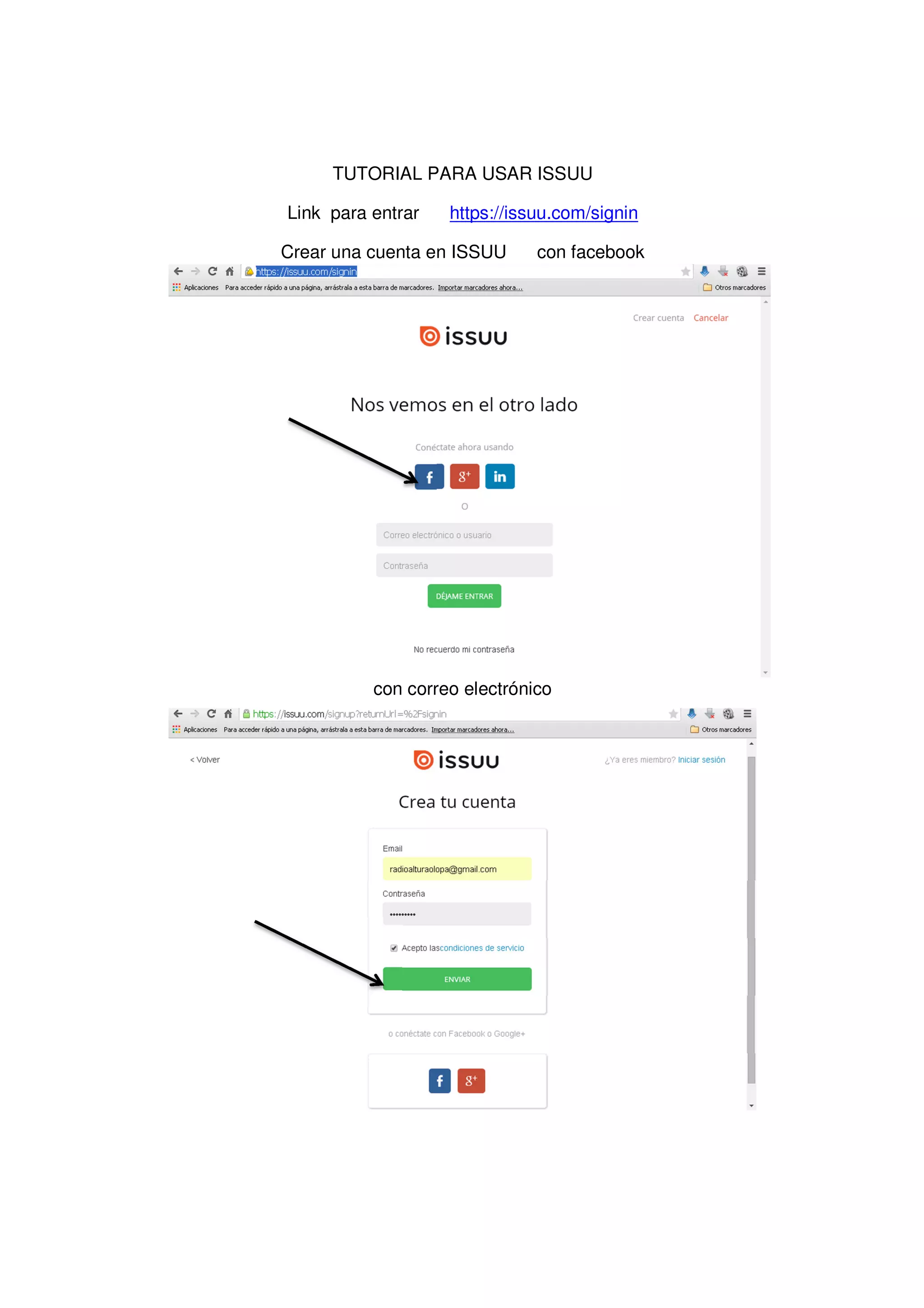 Este documento proporciona instrucciones para usar la plataforma Issuu, incluyendo cómo crear una cuenta, subir un archivo seleccionando el documento deseado, publicarlo y compartir el enlace para que otros puedan verlo. Una vez publicado, el documento puede editarse si es necesario.