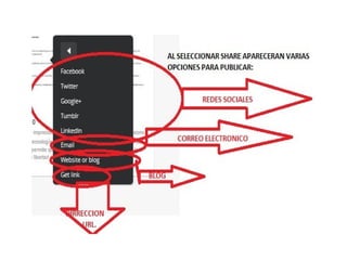 Este documento proporciona instrucciones sobre cómo crear una cuenta en ISSUU, cargar documentos, agregar títulos, descripciones y fecha de publicación original a los documentos, obtener enlaces y códigos de incorporación de documentos publicados, y descargar documentos de ISSUU. Explica los pasos a seguir para cada una de estas tareas comunes de la plataforma ISSUU.