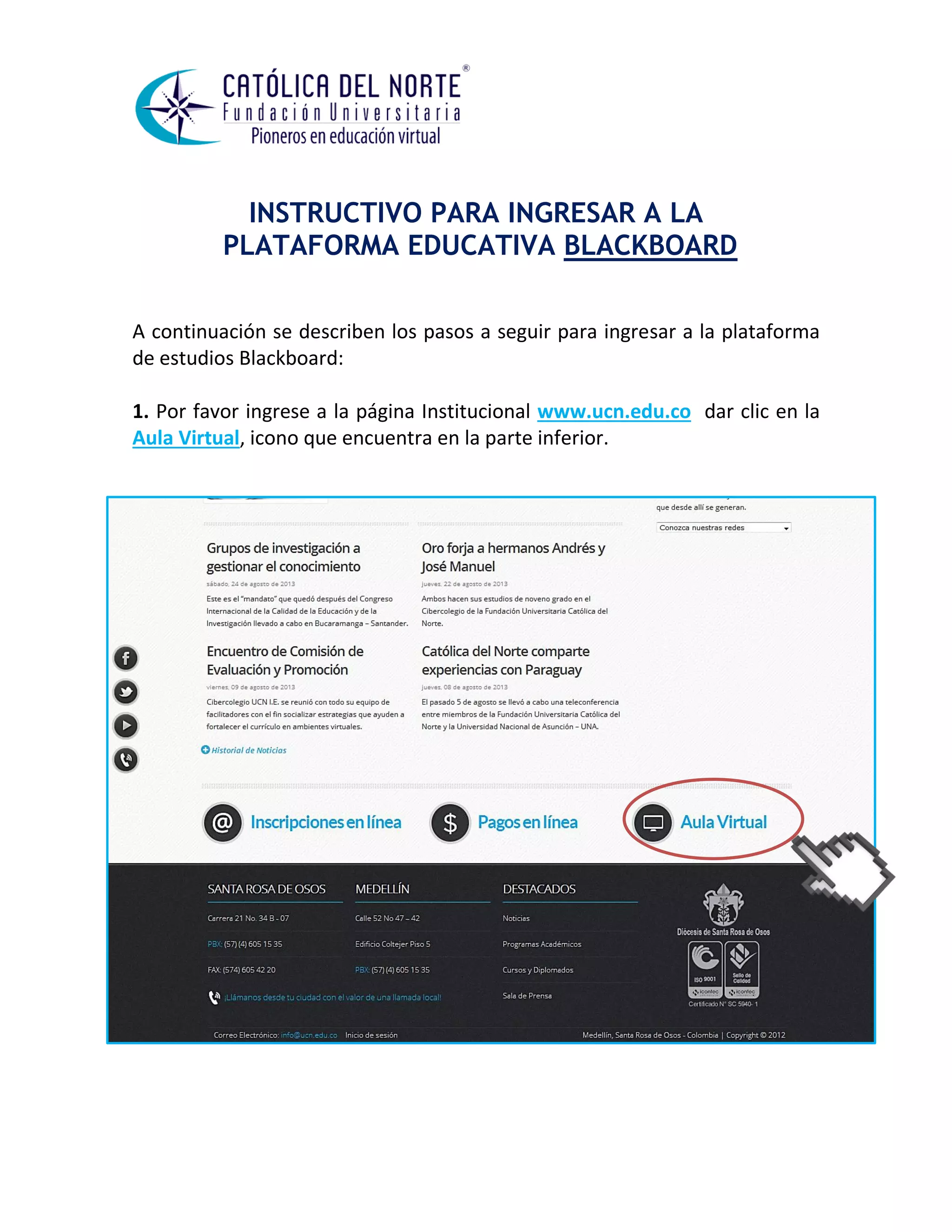 El documento proporciona instrucciones para ingresar a la plataforma educativa Blackboard. Explica los pasos para iniciar sesión usando el nombre de usuario y contraseña asignados, y describe las principales herramientas y funciones disponibles en la plataforma como anuncios, comunicaciones, contenido del curso, actividades y calificaciones.