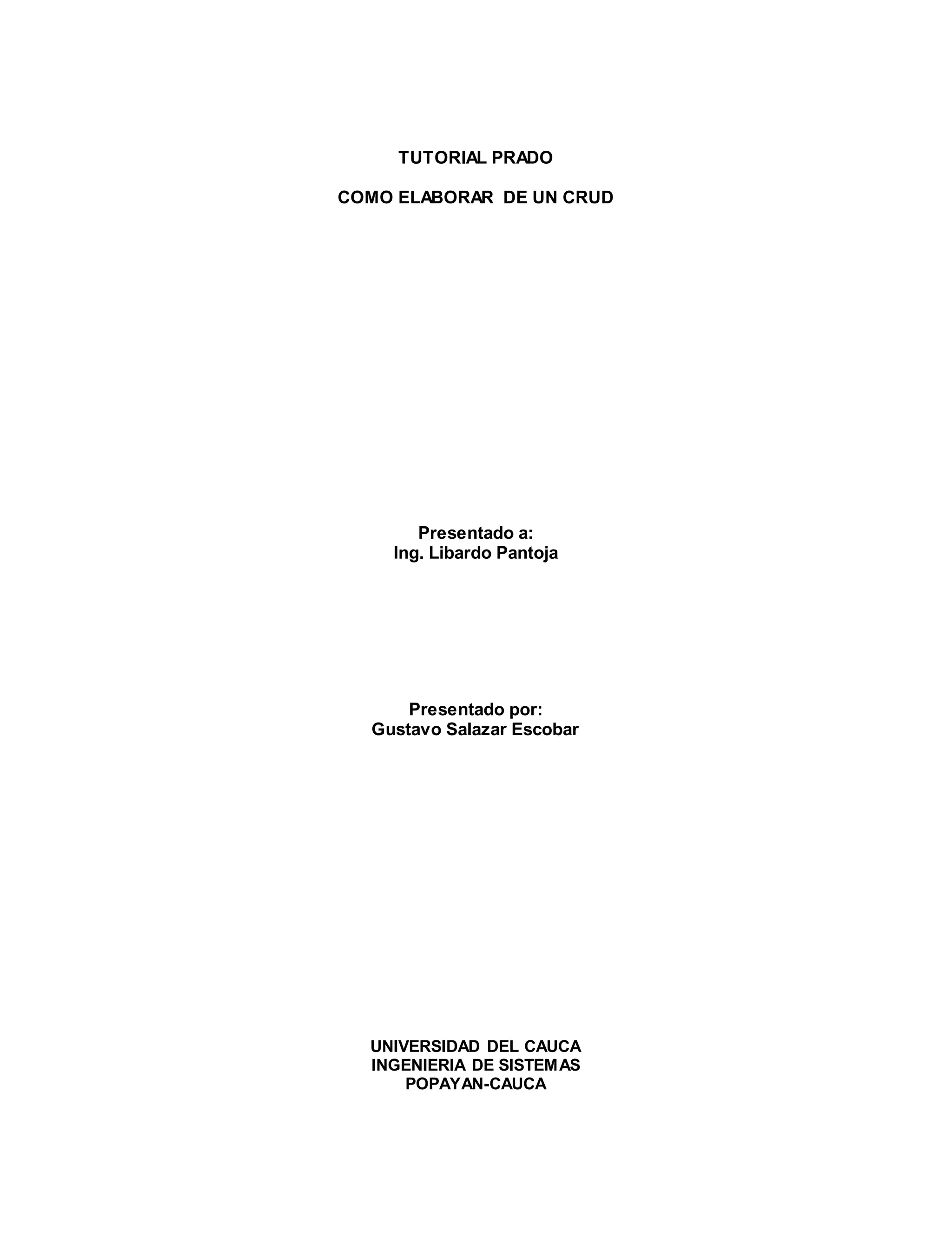 Este documento describe cómo crear un CRUD (crear, leer, actualizar, borrar) con el framework PHP PRADO. Explica cómo instalar PRADO, crear un proyecto, establecer la conexión a una base de datos MySQL, generar clases Active Record y crear páginas para cada una de las acciones del CRUD.