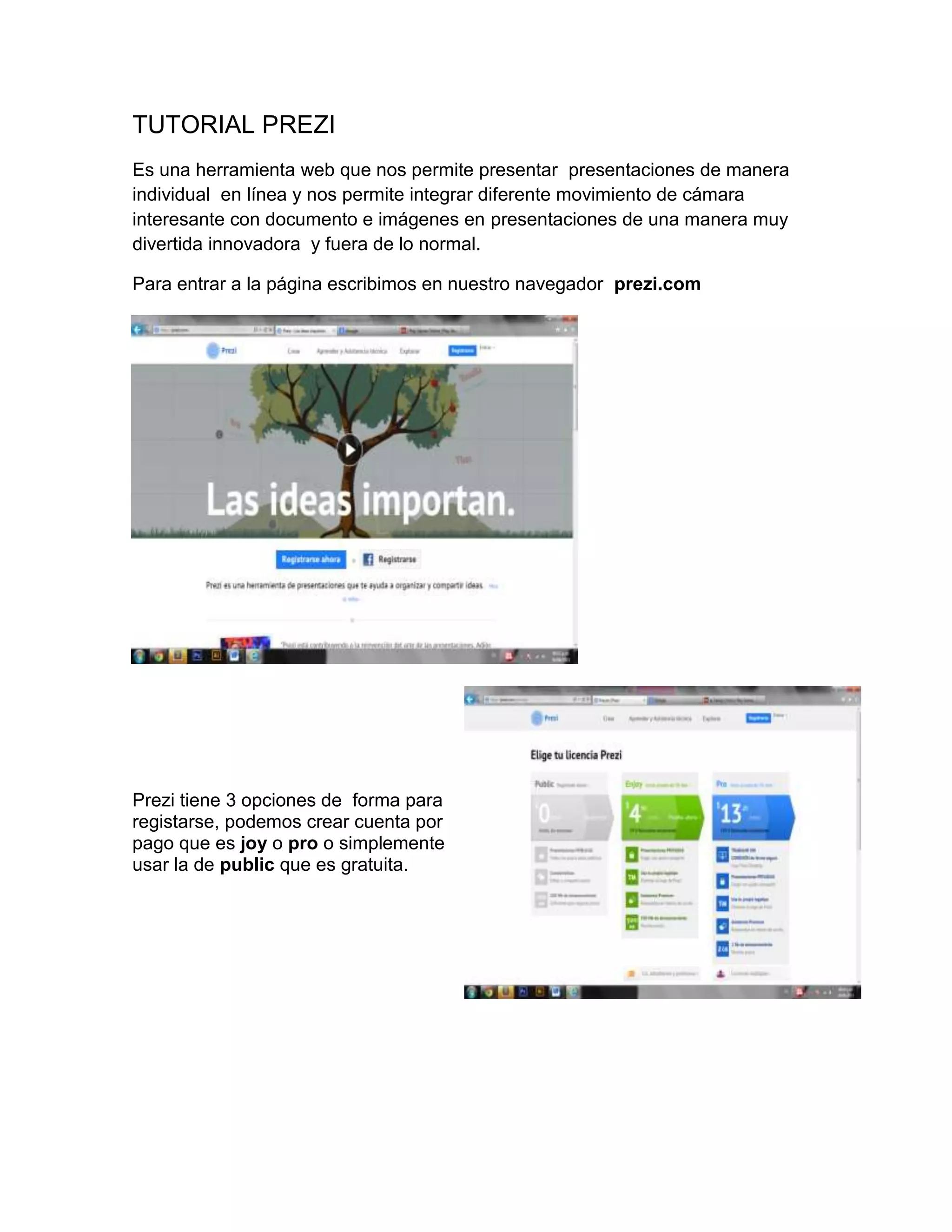 Prezi es una herramienta web que permite crear presentaciones de forma dinámica e interactiva integrando texto, imágenes y videos. Ofrece opciones gratuitas y de pago. Cuenta con menús y paneles para insertar contenido, aplicar temas y establecer la ruta de navegación. Permite importar presentaciones de PowerPoint y agregar elementos como marcos, diagramas y música de fondo.
