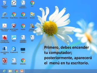 El documento es un tutorial sobre cómo utilizar Internet, que comienza con encender el computador y verificar la conexión disponible. Instruye sobre cómo acceder a navegadores como Internet Explorer y Google Chrome, así como realizar búsquedas y utilizar funciones como la búsqueda por voz mediante una cuenta de Gmail. Proporciona pasos claros para ingresar a sitios web y manejar pestañas dentro del navegador.