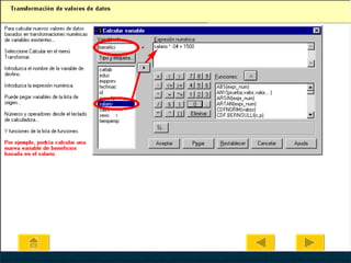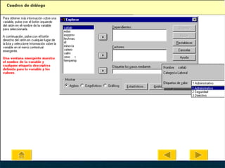 Este documento es un tutorial sobre el programa SPSS, orientado a editores y traductores, que detalla desde la obtención de datos hasta el cálculo de estadísticos y trabajo con resultados. Incluye guías sobre la estructura de datos, cómo introducir información y utilizar herramientas específicas del software. Además, proporciona contactos para obtener información y asesoría adicional en SPSS.