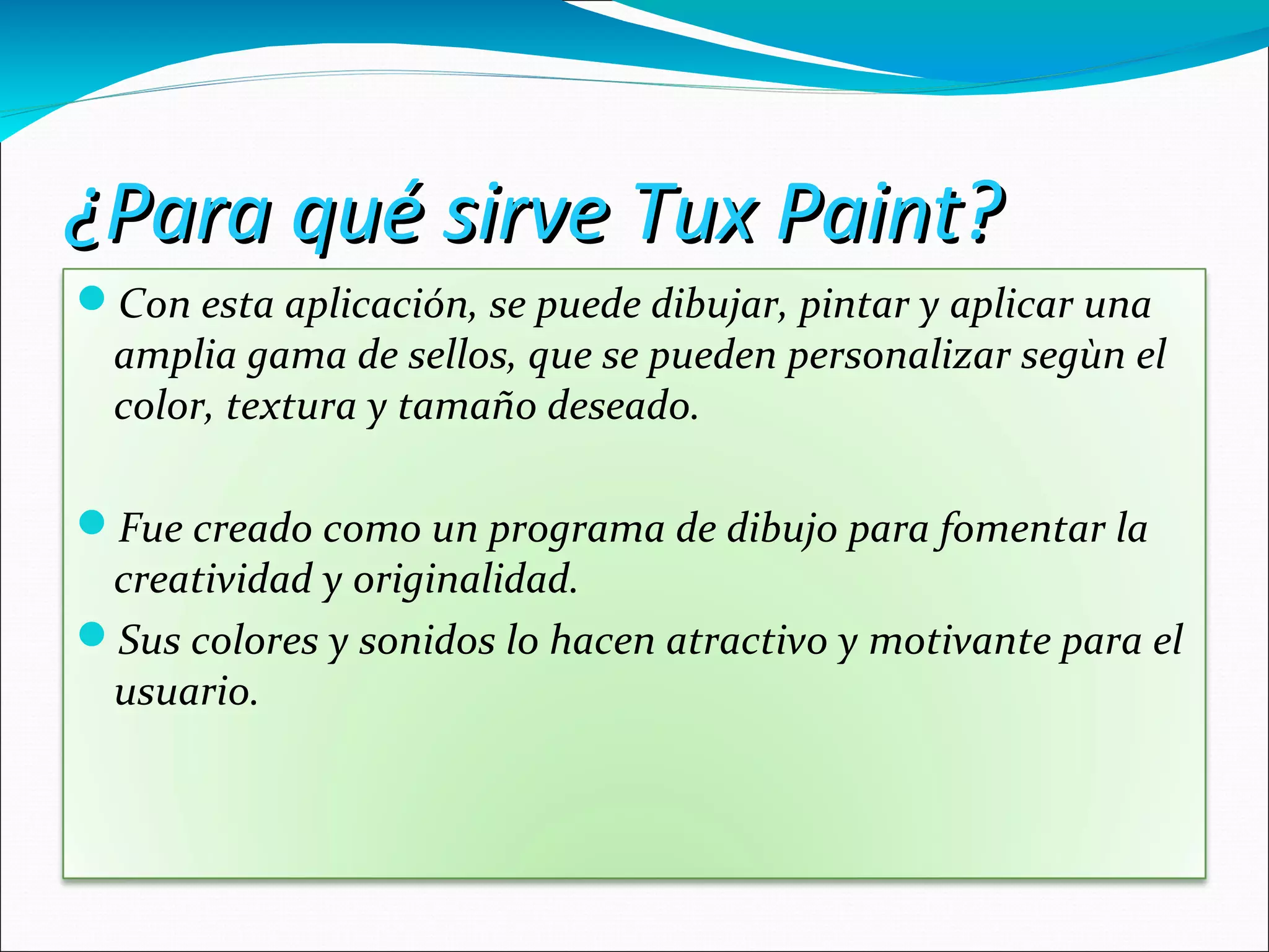 Tux Paint es un programa de dibujo gratuito para niños. Ofrece una amplia gama de herramientas de dibujo y sellos que los niños pueden usar para ser creativos. La interfaz está dividida en tres secciones: una barra de herramientas a la izquierda, una tela de dibujo en el centro, y un selector de herramientas a la derecha. Tux Paint motiva a los niños a dibujar con sus colores vibrantes y sonidos.