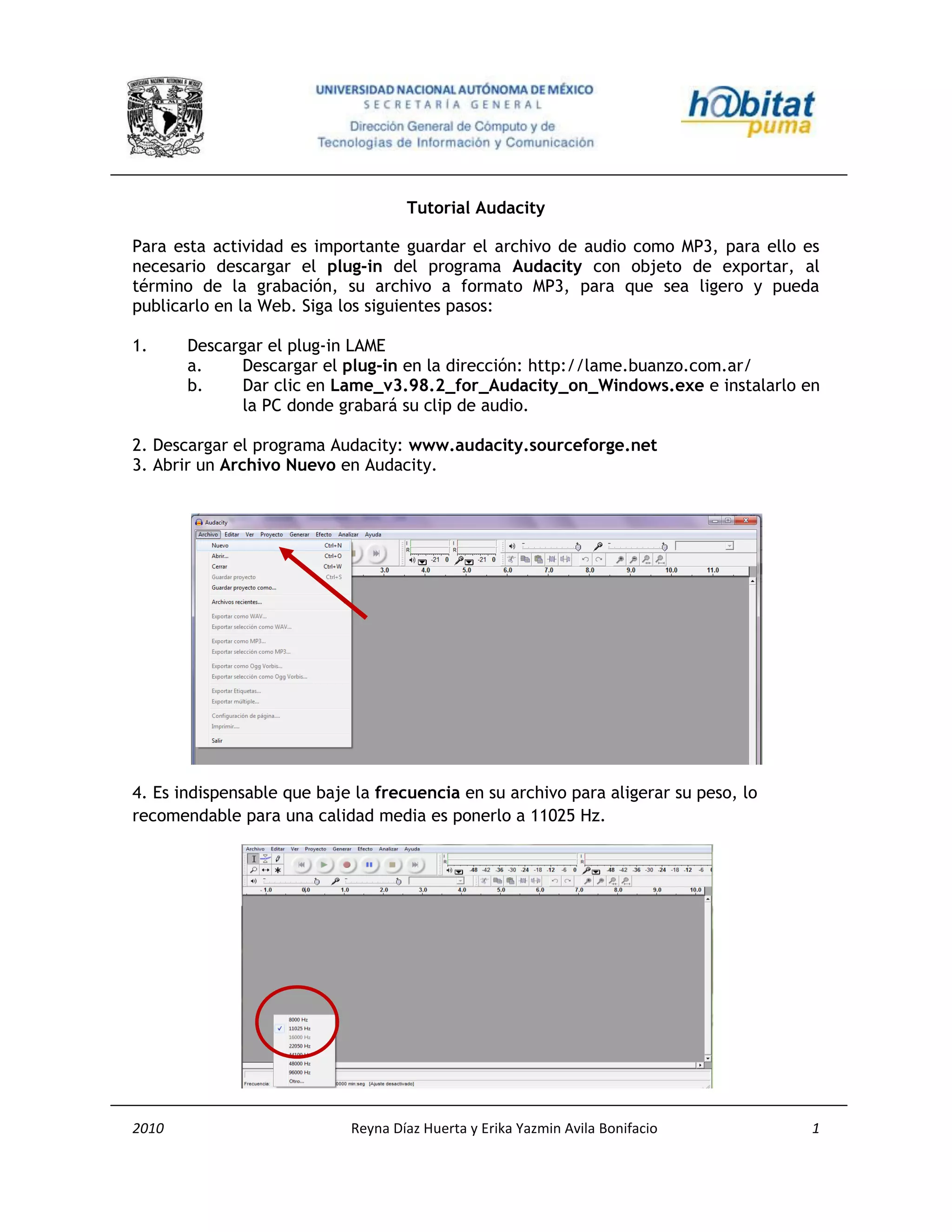 Este documento proporciona instrucciones en 13 pasos para grabar un podcast y exportarlo en formato MP3 usando el programa Audacity. Los pasos incluyen descargar e instalar un plugin LAME, abrir un nuevo proyecto en Audacity, grabar audio, importar música de fondo, aplicar efectos como fade in y fade out, y guardar el archivo final en formato MP3.