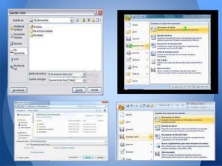 Este documento explica las funciones básicas de Microsoft Word. Word es un software para procesamiento de textos que forma parte de Microsoft Office. Ofrece herramientas para crear nuevos documentos, dar formato al texto mediante fuentes, estilos de párrafo, e insertar elementos como imágenes y tablas. También permite revisar documentos, dar diseño de página y guardar los archivos.