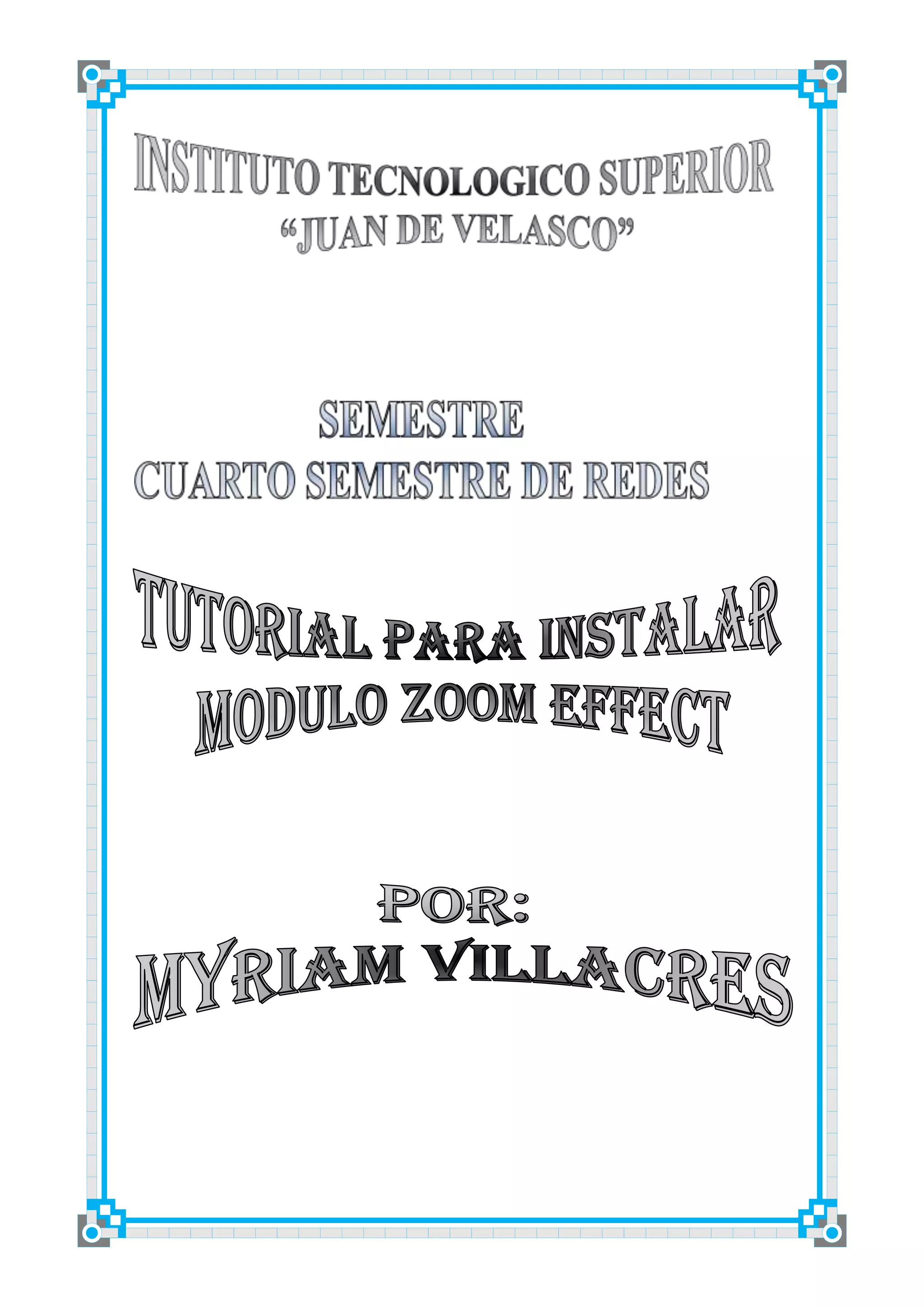 El documento explica cómo descargar e instalar el módulo Zoom Effect en Joomla. Primero se debe descargar el archivo ZIP del módulo. Luego, ingresar como administrador, ir a Extensiones > Instalar/Desinstalar, buscar el módulo en la carpeta descargada y darle a Instalar. Una vez instalado, habilitar el módulo en el Gestor de Módulos y configurar opciones como la carpeta de imágenes y tamaño a mostrar. Finalmente, actualizar la portada para ver el efecto Zoom.