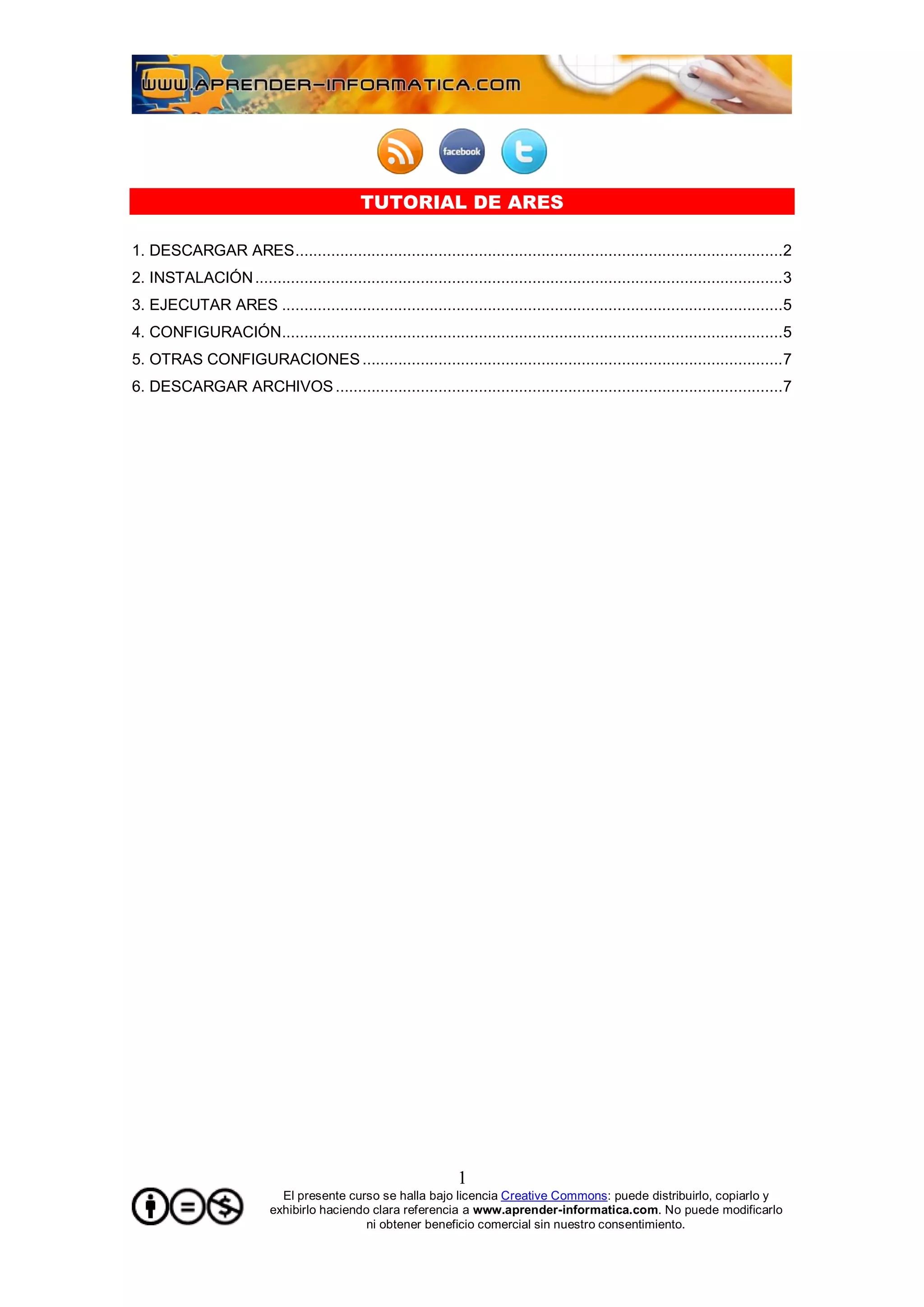 Este documento proporciona instrucciones para descargar e instalar el programa Ares, un cliente P2P popular para compartir archivos. Explica cómo configurar Ares, buscar y descargar archivos, y ofrece consejos sobre seguridad y verificación de archivos descargados.