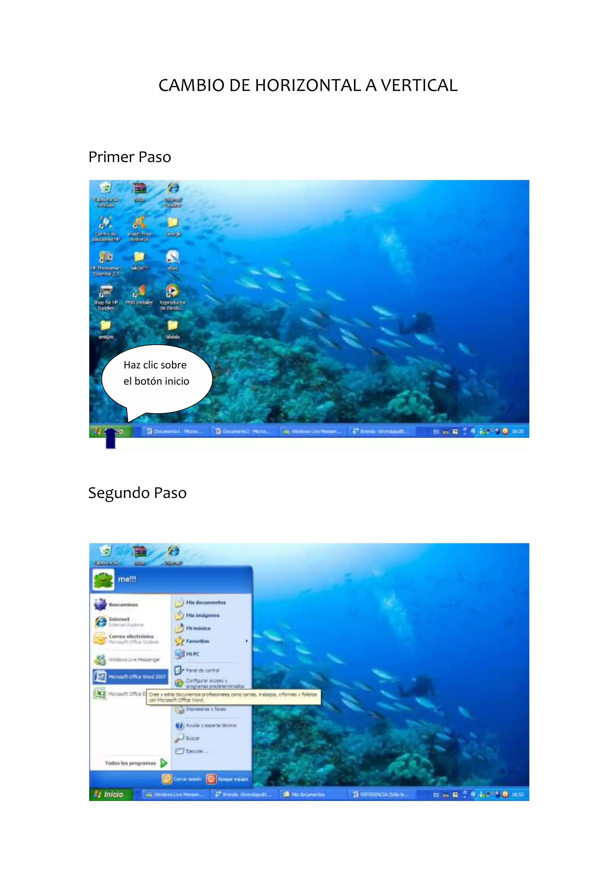 El documento proporciona instrucciones paso a paso para realizar diferentes tareas en programas de computadora como Word y Excel. Explica cómo cambiar la orientación de páginas entre horizontal y vertical, agregar referencias bibliográficas, dividir ventanas y enlazar hojas entre documentos. Los tutoriales son guías centradas en Internet que ofrecen listas de pasos para lograr un objetivo relacionado con la computación o cualquier otro tema.