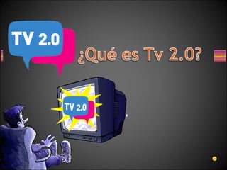 La televisión ha evolucionado desde sus comienzos experimentando cambios como la llegada del color, pero manteniendo su concepto básico de un emisor que difunde señales a receptores pasivos. Sin embargo, la televisión en redes permite la comunicación bidireccional y contenidos generados por los usuarios, como el videoblogging y la televisión por internet. La audiencia dejará de someterse a la programación y podrá elegir qué ver y cuándo, además de interactuar con productores y otros usuarios.