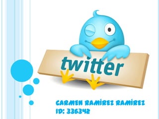Twitter es un servicio de microblogging fundado en 2006 con sede en San Francisco. Permite a usuarios enviar mensajes de texto de hasta 140 caracteres llamados tweets. Ha ganado popularidad mundial con más de 200 millones de usuarios que publican 65 millones de tweets diarios. Fue creado originalmente por Jack Dorsey dentro de la compañía Odeo.