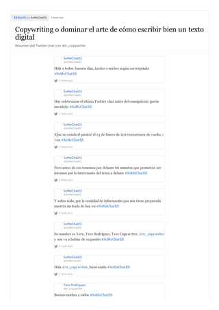 El Twitter chat con Tere Rodríguez explora el arte del copywriting, destacando su papel en la persuasión y redacción de textos digitales que generan beneficios monetarios. Rodríguez enfatiza la importancia de la conexión emocional con el lector y la necesidad de adaptar el estilo a cada audiencia. También se discuten la formación, la búsqueda de copywriters competentes y la perdurabilidad del copywriting en la era digital.