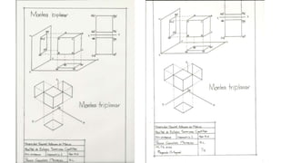 El documento describe los conceptos de montea biplanar, montea triplanar y proyección ortogonal. Una montea biplanar tiene dos planos ortogonales entre sí, uno horizontal y uno vertical. Una montea triplanar tiene tres planos de proyección cuyas direcciones de los ejes pueden ser cualesquiera. La proyección ortogonal implica dos planos infinitos perpendiculares entre sí, el plano horizontal y el plano vertical, que dividen el espacio en cuatro cuadrantes numerados en sentido contrario a las manecillas del reloj.