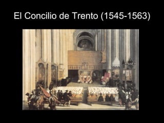 El documento describe el estilo artístico del Barroco que surgió después del Concilio de Trento. El Concilio estableció normas para que el arte sea retórico, emocional y decoroso para convencer a través de la emoción. El Barroco se caracteriza por ser teatral, conmovedor y espectacular. Italia, especialmente Roma, fue el centro de este estilo donde artistas como Bernini, Caravaggio y Canaletto crearon obras maestras. El Barroco también floreció en países como Flandes, Holanda y