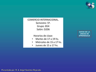 El documento aborda el comercio internacional y su enseñanza en un curso organizado en semestres, destacando la importancia de la interdependencia económica a nivel global y la influencia de bloques económicos. Además, menciona a economistas clásicos como Adam Smith y David Ricardo, y sus contribuciones al entendimiento del valor y la riqueza en la economía. También se incluyen datos sobre calificaciones y objetivos educativos, así como estadísticas de crecimiento económico por países.