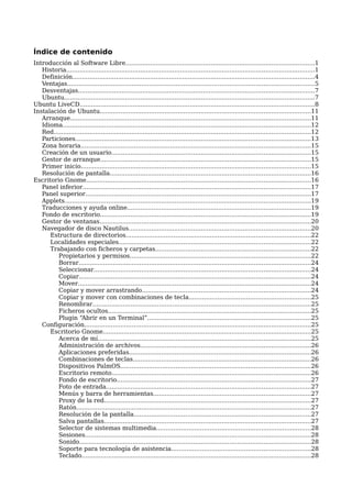 Este documento presenta una introducción al software libre. Explica que en los años 70 el software se compartía libremente, pero en los 80 las empresas comenzaron a privatizarlo. Richard Stallman creó el proyecto GNU en 1984 para desarrollar software libre que garantizara las libertades de los usuarios. Fundó la Free Software Foundation para promover estos ideales. El núcleo Linux completó el sistema operativo GNU en 1991, dando lugar a GNU/Linux.