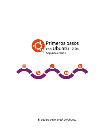Este documento es un manual introductorio para el sistema operativo Ubuntu 18.04 LTS. Explica conceptos básicos como la instalación, el escritorio y la gestión de software. También proporciona una breve historia de Ubuntu y su filosofía de software libre y código abierto. El manual está diseñado para guiar a usuarios nuevos a través de las funciones principales de Ubuntu de manera fácil de entender.