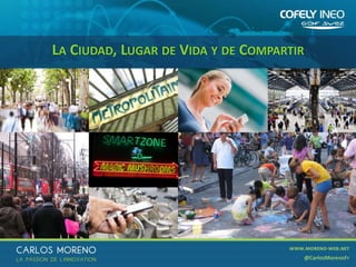 El documento describe las características de una ciudad inteligente y los desafíos que enfrentan las ciudades modernas. Las ciudades deben enfocarse en mejorar la calidad de vida de los ciudadanos mediante el uso de nuevas tecnologías, al tiempo que gestionan problemas como el cambio climático, la desigualdad social y los riesgos ambientales. Las ciudades inteligentes utilizan plataformas digitales abiertas para brindar mejores servicios a los ciudadanos de una manera sostenible, resiliente e inclusiva.