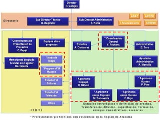 El documento describe el Centro Regional de Estudios Agronómicos de la Universidad de Chile en la Región de Atacama. Explica que la agricultura es fundamental para la región pero requiere investigación e innovación debido a los recursos limitados. El centro busca aumentar la competitividad regional a través de la investigación, capacitación y asistencia técnica en frutales, hortalizas y agroindustria, aprovechando la experiencia de profesionales líderes.