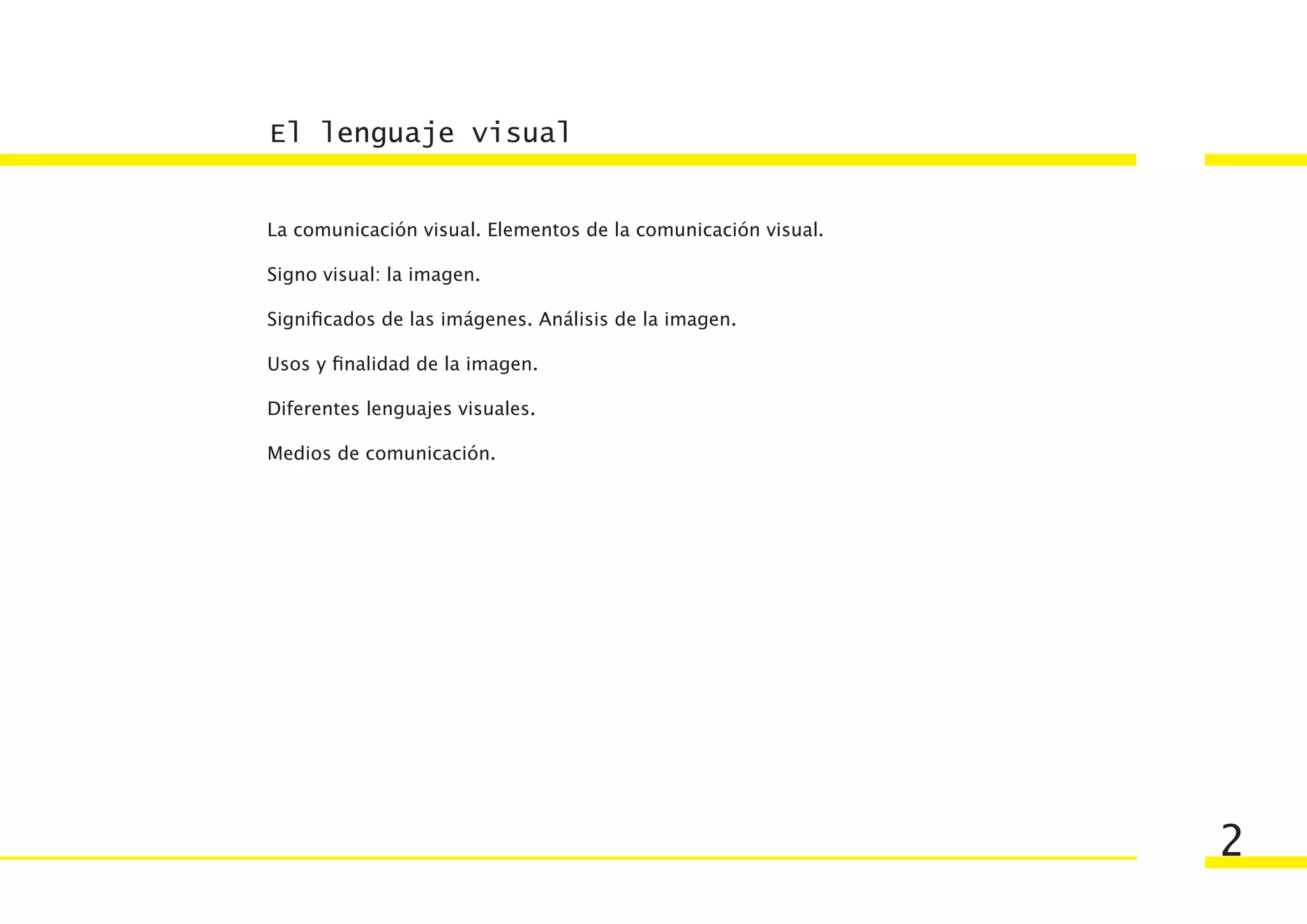 Este documento describe diferentes aspectos del lenguaje visual como forma de comunicación. Explica que la comunicación visual utiliza signos como las imágenes y tiene elementos como el emisor, mensaje y receptor. Además, describe diferentes tipos de lenguajes visuales como el diseño gráfico, fotografía y cómic, e identifica medios de comunicación de masas que utilizan el lenguaje visual como la televisión y la publicidad.