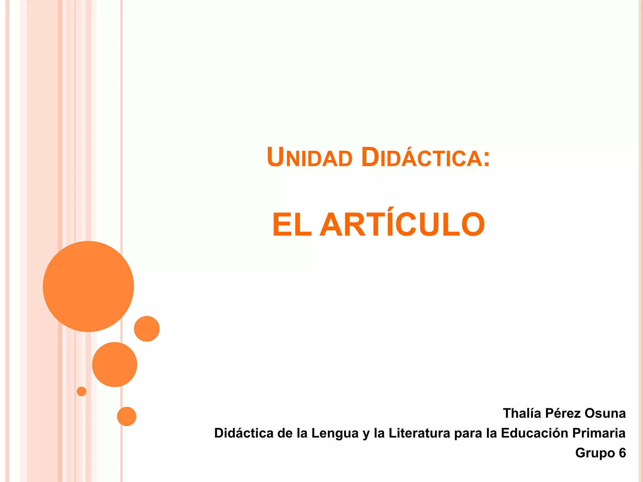 Este documento presenta una unidad didáctica sobre el artículo para alumnos de primer ciclo de primaria. La unidad consta de tres sesiones y cubre los tipos de artículos (variables, invariables y contractos), así como actividades para reconocerlos, asociarlos y completar oraciones con ellos. El objetivo es capacitar a los alumnos para usar correctamente el artículo en expresiones orales y escritas.