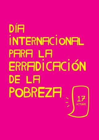 El documento describe una actividad para reflexionar sobre la desigualdad global y la pobreza con motivo del Día Internacional para la Erradicación de la Pobreza. Se divide al grupo en 7 equipos que representan familias de distintos tamaños. Cada familia recibe recursos diferentes para cubrir sus necesidades básicas simulando situaciones de desigualdad. Tras debatir su experiencia, vuelven a intentarlo cooperando para que todos satisfagan sus necesidades y derechos. El objetivo es que tomen conciencia de la desigualdad mundial y