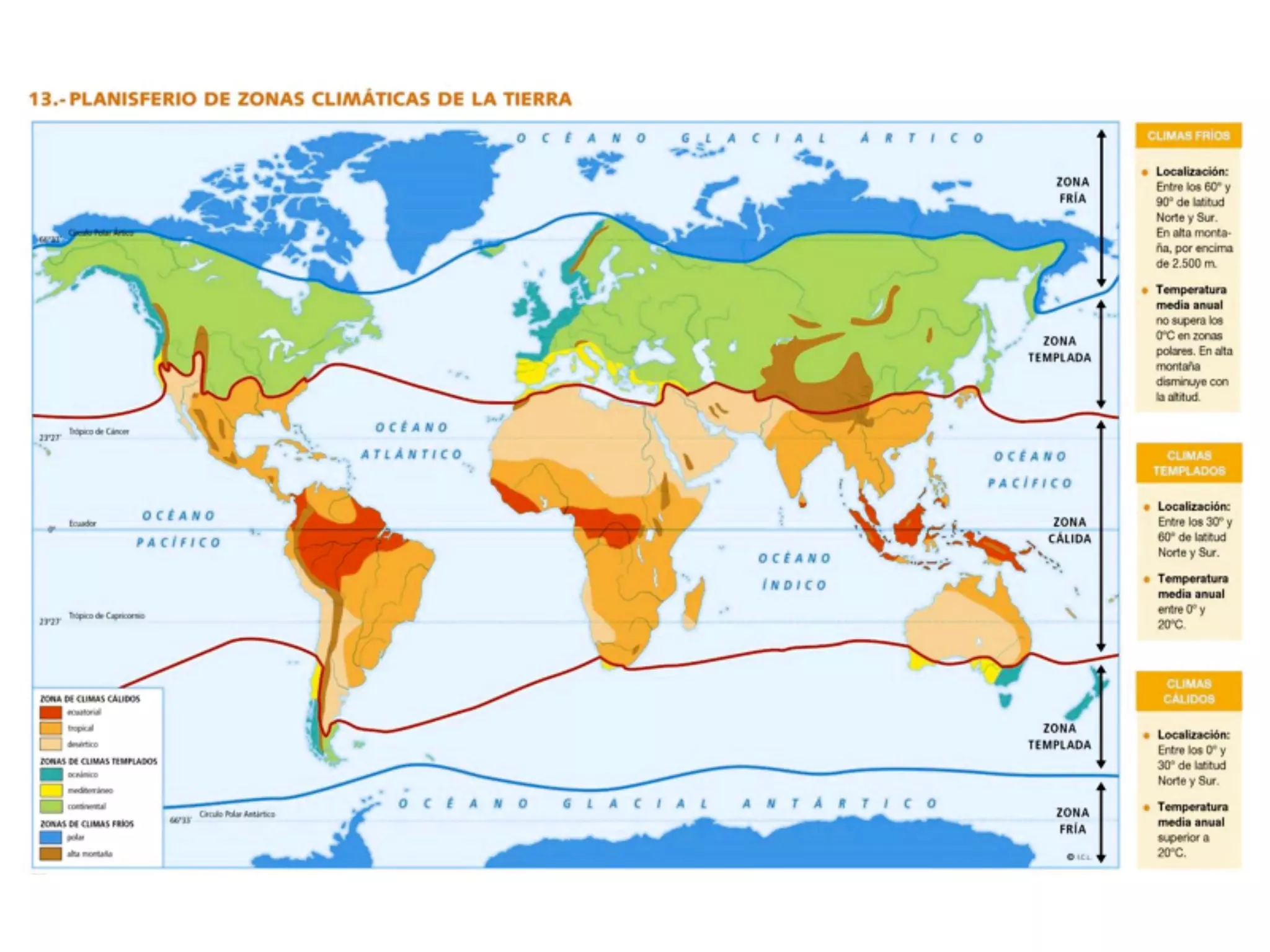 Este documento resume los diferentes tipos de medios naturales, incluyendo zonas frías, medios polares, y medios de alta montaña. Las zonas frías se caracterizan por un intenso frío durante gran parte del año, con temperaturas máximas de 10°C. Los medios polares se ubican entre los círculos polares y los polos, con veranos e inviernos de 6 meses cada uno. La vegetación típica es la tundra. Algunos animales comunes son el zorro ártico, pingüinos y renos. Los medi