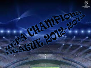 El documento resume los 8 grupos de la fase de grupos de la Liga de Campeones 2012-2013. Resalta que el PSG y Oporto se clasificaron en el Grupo A, mientras que el Schalke y Arsenal lo hicieron en el Grupo B. En el Grupo C, el Málaga aprovechó el bajo nivel del Milan y Zenit. En el Grupo D, el Borussia Dortmund dominó sobre el City, Madrid y Ajax. El documento también analiza los resultados del Grupo E, F, G y H.
