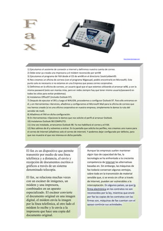 El documento describe varios dispositivos de comunicación y oficinas como fax, impresora, USB, proyector de video, videoconferencia. Explica brevemente lo que son y cómo funcionan cada uno de estos dispositivos para transmitir y visualizar información de forma remota o local.